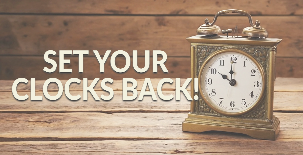 REMINDER: SET YOUR CLOCK BACK! On Sunday, November 2, at 2 AM, you will set your clocks back one hour to mark the end of Daylight Saving Time.