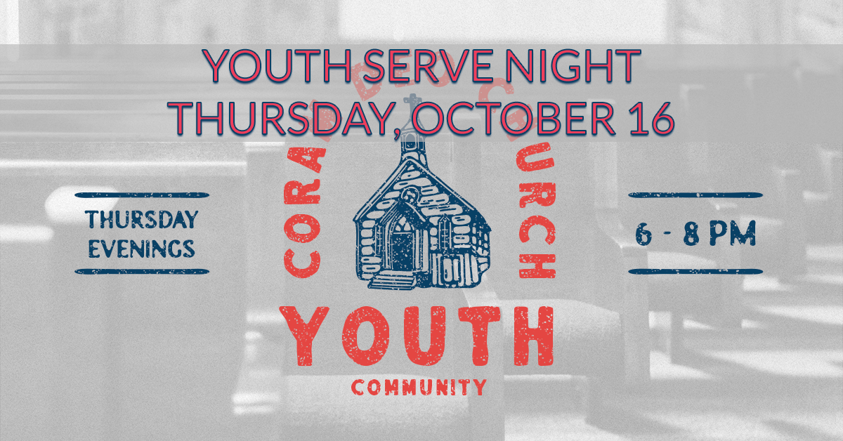 Youth Community is meeting tonight for Serve Night! We are going to serve our church and community by helping to set up for the Fall Festival.